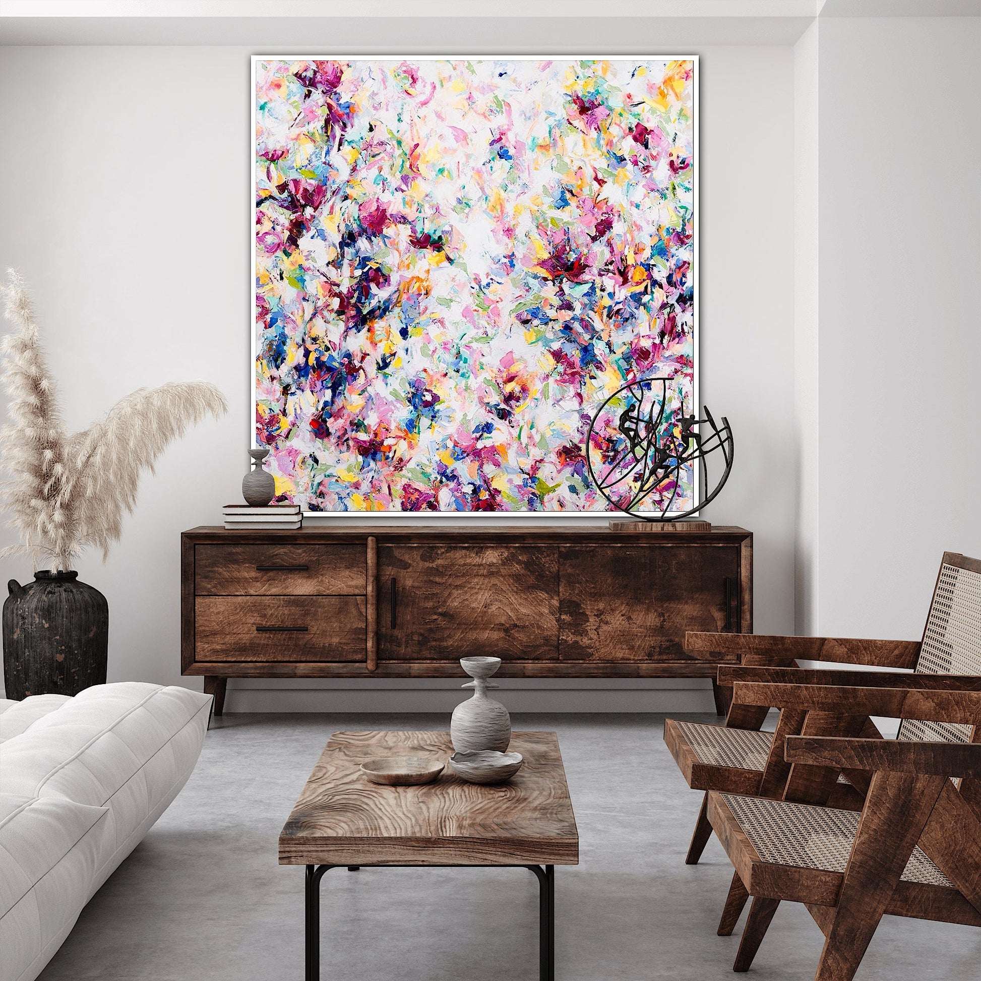 What began as a simple act of preservation evolved organically into a vibrant composition in its own right. With each gesture, the new painting absorbed traces of The Dame’s spirit — her energy, her palette, her rhythm. By the end, I brought the piece together with intentional touches, refining what chance had started.